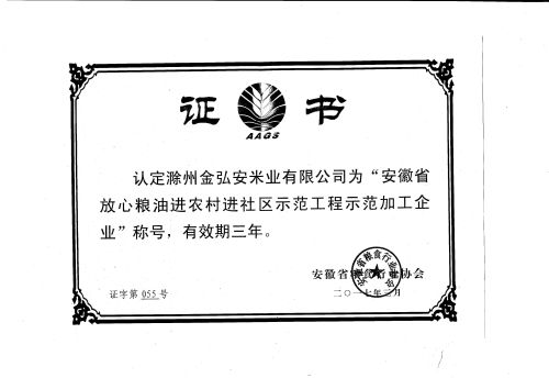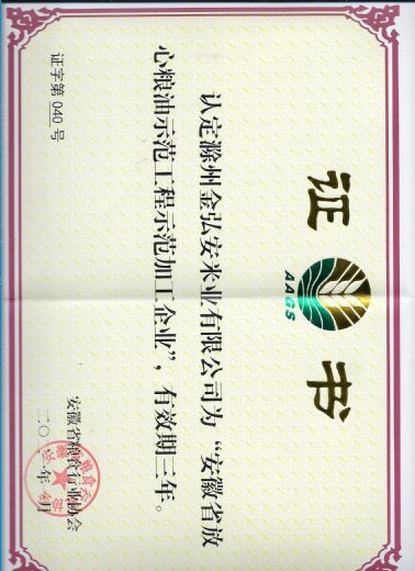 安徽省放心糧油示范加工企業