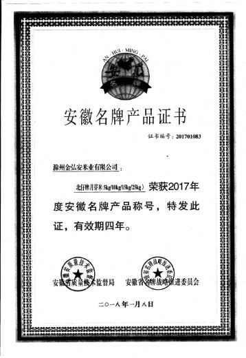 安徽名牌產品證書