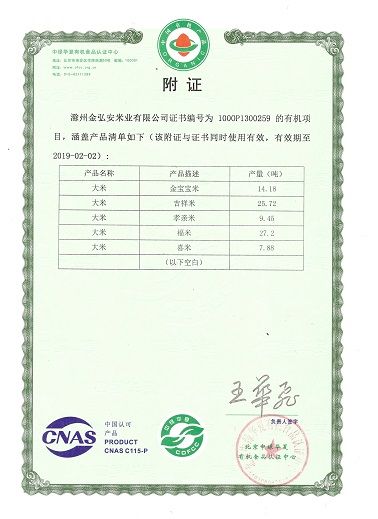 有機產品認證證書——稻谷